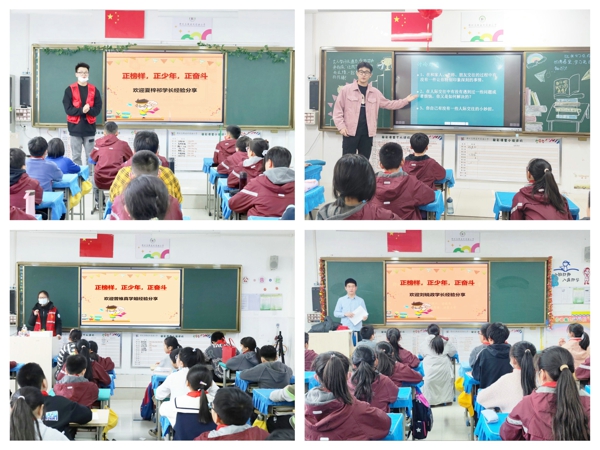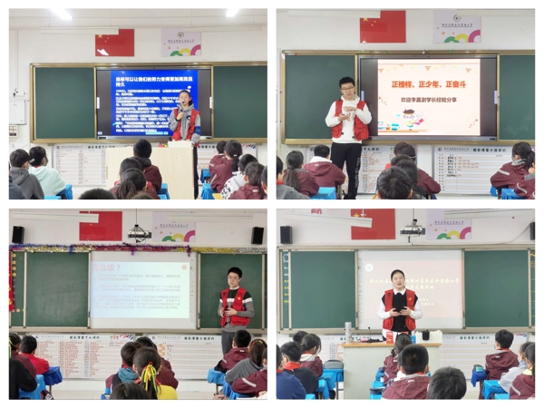 北京大學保送生夏梓祁同學帶來“夢想”專題,其強大的動力來自于,當確立自己的夢想并為之奮斗的時候,就會有無限的動力去忘我投入,這種感受是快樂的。南開大學保送生王一政同學暢談他對“交往”的理解,“讀萬卷書,行萬里路,不如閱人無數(shù)”,引導(dǎo)同學們反思和回顧自己的人際交往歷程,探討在交往中如何審視自身不足,向他人學習的方法和技巧。上海交通大學保送生曾維真同學分享“習慣”主題,她以學習方法和學習習慣為切入點,以互動問答的方式分享自己的經(jīng)歷,讓同學們明白良好的習慣讓人受益終身。北京大學保送生劉銳政同學帶來“變革”專題,介紹了從古至今學習與評價的變革與發(fā)展過程,讓同學們了解珍惜時間的重要性,耕耘與收獲的相輔相成,從而認真對待人生的每一次考驗,為未來做好積淀。