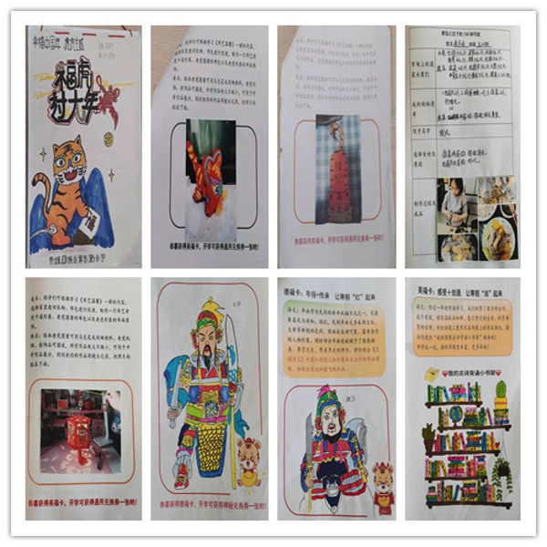 寒假前,五年級老師們結合學科特點、學校特色、學生特點,各出奇招、妙招,布置了以“;⑦^大年”為主題的個性化特色寒假作業(yè),讓學生度過一個充實、有意義的寒假。活動中,五年級老師們挑選出了形式多樣、書寫工整、創(chuàng)意深遠的優(yōu)秀作業(yè),有豐富多彩、感悟深刻的讀書筆記之《三國演義》;有制作精美、構思巧妙的“福”字;有用實際行動“助力冬奧,宣傳冬奧”的體育鍛煉;也有整合各學科知識完成的以“繪畫老虎”為主題的精美卡片等,一份份各具特色的寒假作業(yè),充分展示了學生們的智慧和素養(yǎng),更飽含了全體教師對學生的辛勤培育和殷殷期盼。同學們認真欣賞和學習作業(yè)中清晰美觀的字跡、筆底生花的內(nèi)容,不斷交口稱贊,紛紛表示找到了自己以后努力的方向,要向他們學習。