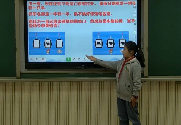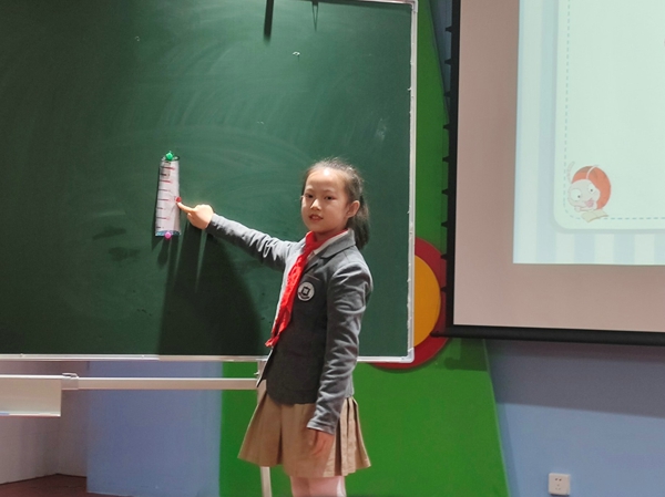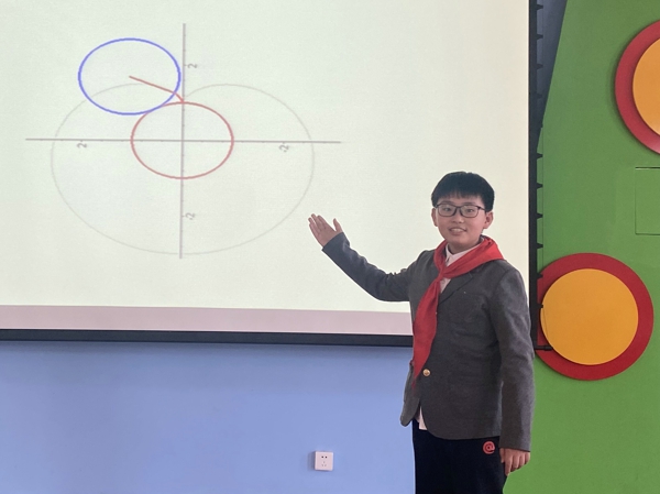 一年級董若希同學帶領大家領略《馬小跳玩數學》中經典的數學故事《采松果的小松鼠》。二年級徐子越同學,生動有趣地講述了胖子“0”與瘦子“1”的趣味與神奇。三年級的袁夢同學通過切蘋果,直觀展示了分數平均分的過程。四年級的馮品賀同學在亡羊補牢的故事中,感悟到三角形具有穩(wěn)定性,平行四邊形不穩(wěn)定。五年級王沛雯同學將生動美妙的故事導入數學元素,帶來了一場奇妙的數學之旅。六年級的柳驍睿同學為大家講述了笛卡爾浪漫的心形線故事。