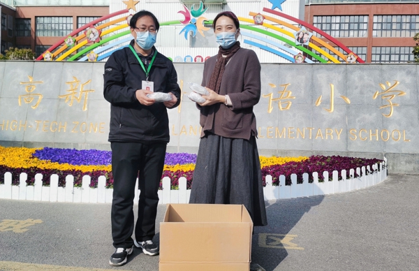愛心筑防線,溫情暖校園。六(7)班學(xué)生薄鈞戈的家長(zhǎng)心系外小,向?qū)W校捐贈(zèng)500只KN95口罩,為學(xué)校疫情防控工作助力。外國(guó)語小學(xué)后勤服務(wù)保障研究中心時(shí)永軍主任代表學(xué)校接受捐贈(zèng),并對(duì)熱心家長(zhǎng)給予學(xué)校的關(guān)心和幫助表示誠(chéng)摯的謝意。