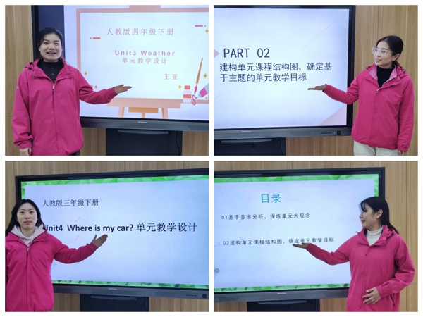 “單元疑彩課堂”教學(xué)設(shè)計(jì)分享環(huán)節(jié),老師們根據(jù)抽到的教材模塊和具體單元,現(xiàn)場完成教學(xué)設(shè)計(jì),并逐一進(jìn)行分享交流。解讀國家課程標(biāo)準(zhǔn),對應(yīng)學(xué)科核心素養(yǎng),建構(gòu)課程結(jié)構(gòu),提出單元大觀念,制定學(xué)習(xí)目標(biāo)與評價標(biāo)準(zhǔn),統(tǒng)籌單元與課時學(xué)習(xí)任務(wù),創(chuàng)設(shè)真實(shí)生活情境,優(yōu)化作業(yè)設(shè)計(jì),強(qiáng)化口語表達(dá)與書面習(xí)作的協(xié)同,體現(xiàn)“教—學(xué)—評”一致性,落實(shí)學(xué)生為本、學(xué)習(xí)高效,指向語言能力和思維品質(zhì)的培養(yǎng)。不同教師對于教學(xué)設(shè)計(jì)有不同的思考,形成不同的特色和亮點(diǎn),極大激發(fā)了大家的研討興趣,在交流碰撞中衍生出新的智慧。