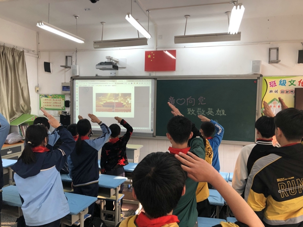 隊(duì)會(huì)課上,各中隊(duì)輔導(dǎo)員向隊(duì)員們介紹了清明節(jié)的由來(lái)和習(xí)俗,同時(shí)講述了董存瑞、邱少云、劉伯承、狼牙山五壯士等英雄的愛(ài)國(guó)主義事跡。“今天的幸福生活是無(wú)數(shù)革命先烈拋頭顱、灑熱血用生命換來(lái)的,我們應(yīng)該努力學(xué)習(xí),為將來(lái)建設(shè)祖國(guó)做貢獻(xiàn)。”五(3)班商子墨激動(dòng)地說(shuō)道。二(1)中隊(duì)輔導(dǎo)員劉廣勇向隊(duì)員們講道:“愛(ài)國(guó)是奉獻(xiàn)的實(shí)質(zhì)和核心。雖然我們身處和平年代,無(wú)法體會(huì)戰(zhàn)爭(zhēng)的困苦與磨難,但我們?nèi)圆荒芡洑v史,在中華民族面臨危難的時(shí)候,是先烈們挺身而出,把滿腔的熱血灑遍祖國(guó)的大地,我們要向他們致敬。”