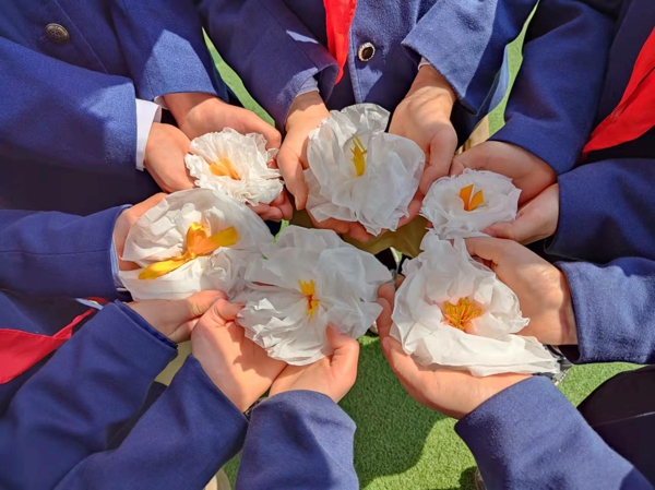 隊(duì)員們通過(guò)折紙白玉蘭,云端祭思念,用自己靈巧的小手精心制作朵朵白玉蘭緬懷先輩,以花代情,云祭思念,祈愿你我無(wú)恙,家國(guó)安好;穿越時(shí)空,借信致敬英烈,隊(duì)員們穿越時(shí)空,將思念訴諸筆端,借信向無(wú)數(shù)革命烈士為了民族獨(dú)立、人民的安危,沖鋒在前,視死如歸的英烈們致敬,借書(shū)信隔空對(duì)話(huà),向英烈講述新時(shí)代,這盛世如你所愿;通過(guò)上主題隊(duì)課,知清明習(xí)俗,各中隊(duì)利用少先隊(duì)活動(dòng)課學(xué)習(xí)清明節(jié)的由來(lái)和節(jié)日習(xí)俗,感受清明文化,感悟今日的幸福生活來(lái)之不易;通過(guò)綠色清明,祭革命英雄,為倡導(dǎo)文明祭祀,全體少先隊(duì)員參與中國(guó)文明網(wǎng)祭英烈活動(dòng),通過(guò)網(wǎng)上獻(xiàn)花、留言等網(wǎng)絡(luò)方式向?yàn)槊褡鍙?fù)興、國(guó)家富強(qiáng)而英勇獻(xiàn)身的民族英烈致敬,表達(dá)追思之情。