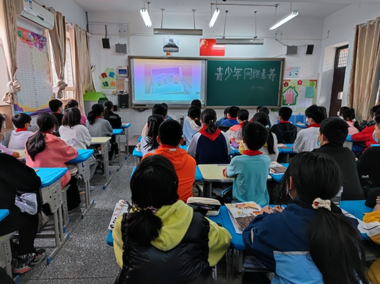 鄭州管城區(qū)南學(xué)街小學(xué)組織少先隊員觀看《團團微課:青少年網(wǎng)絡(luò)素養(yǎng)公開課》
