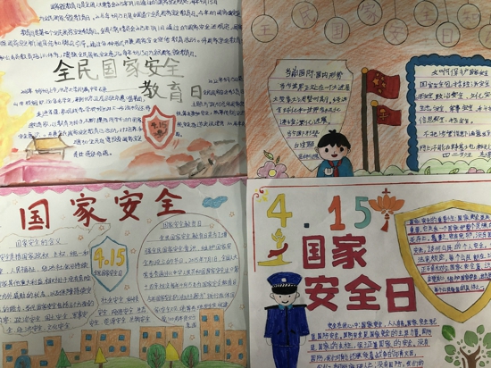 主題教育結(jié)束后,各班學(xué)生還紛紛用自己的方式來表達(dá)自己心目中的國(guó)家安全。有的同學(xué)通過書寫記錄單的形式向大家講述國(guó)家安全的含義;有的同學(xué)制作國(guó)家安全宣傳海報(bào),圖文并茂地展示著國(guó)家安全的重要性;有的同學(xué)們拿起畫筆,制作學(xué)習(xí)宣傳國(guó)家安全教育的手抄報(bào),既達(dá)到了宣傳國(guó)家安全知識(shí),又提高了學(xué)生動(dòng)手、動(dòng)腦的能力,進(jìn)一步深化了國(guó)家安全教育的防范意識(shí)。