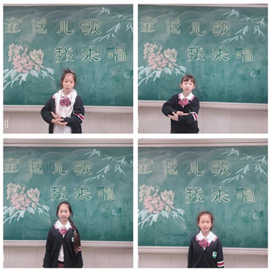 一年級的小朋友們在老師的指導(dǎo)下,利用誦讀傳唱的方式,將童謠唱了起來,有心的孩子還給童謠搭配了自己的動作,生動活潑地將童謠的快樂傳遞給了每一個(gè)學(xué)生?,一張張笑臉多美,他們在感受唱童謠的快樂呢!展示過程中,孩子們自信滿滿,聲音時(shí)而柔美清新,時(shí)而慷鏘有力,教室中孩子們掌聲不斷。