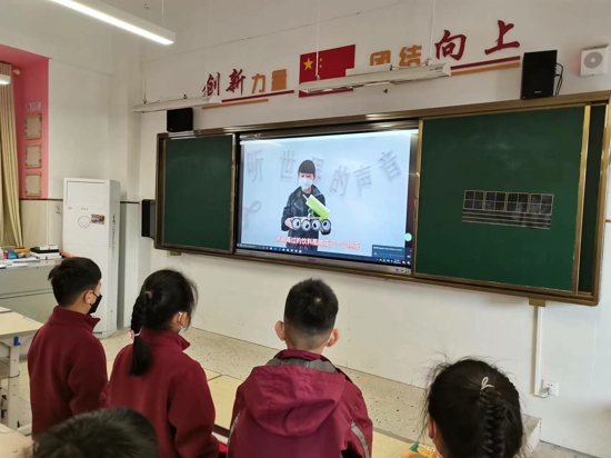 同學(xué)們觀看一一班帶來的環(huán);顒(dòng)展示