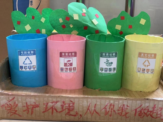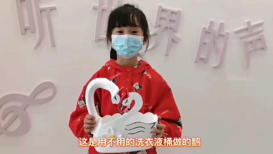 儀式上,一、一班向大家展示了“保護(hù)環(huán)境從廢物利用做起”主題微視頻。孩子們利用課余時(shí)間通過搜集資料,明確了廢物的危害,深刻感受到愛護(hù)環(huán)境、保護(hù)地球從現(xiàn)在做起的必要性。孩子們?cè)诩议L(zhǎng)的幫助下,把用完的紙盒裝飾一新當(dāng)筆筒,把廢舊的宣傳海報(bào)折疊拼裝成美觀的收納盒、花瓶,把不用的報(bào)紙做成漂亮的衣服、玩具,用塑料瓶做成飛機(jī)……經(jīng)過創(chuàng)意,廢舊物品實(shí)現(xiàn)了華麗變身,變廢為寶。