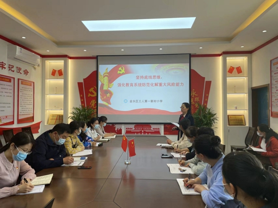 中新河南網(wǎng)4月23日電(吳勇強(qiáng)侯倩倩)為不斷增強(qiáng)黨員憂患意識(shí),堅(jiān)持底線思維,提高廣大黨員教師防范化解重大風(fēng)險(xiǎn)能力,中共鄭州市金水區(qū)工人第一新村小學(xué)黨支部于2022年4月21日,組織全體黨員、入黨積極分子、骨干教師,在黨支部黨員活動(dòng)室開(kāi)展了“堅(jiān)持底線思維強(qiáng)化教育系統(tǒng)防范化解重大風(fēng)險(xiǎn)能力”主題黨日活動(dòng)。