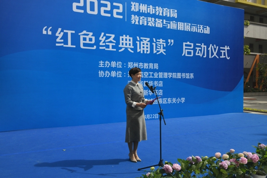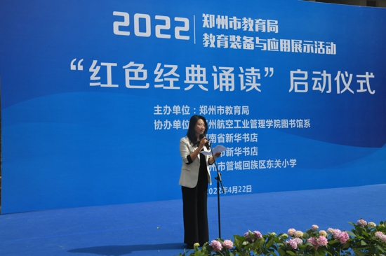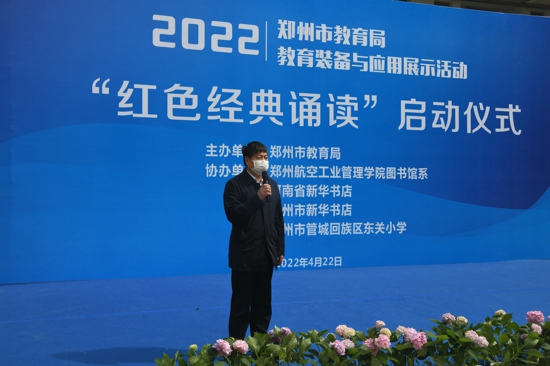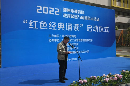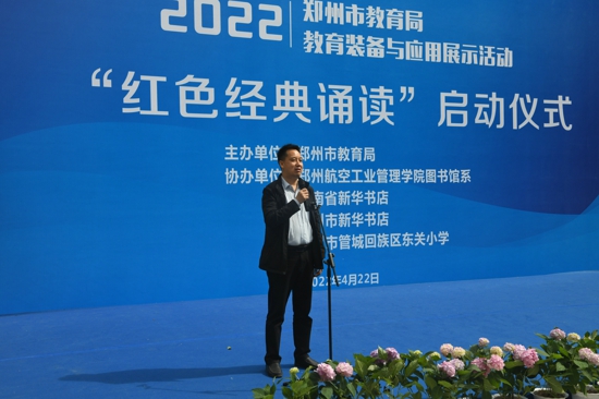中新河南網(wǎng)4月23日電(吳勇強)4月22日,恰逢“世界讀書日”來臨之際,鄭州市教育局教育裝備與應用展示活動——“紅色經典誦讀”在東關小學正式啟動。鄭州市教育局三級調研員花林昌,管城區(qū)政府副區(qū)長屈連武,管城區(qū)教育局黨組書記、局長高峰,鄭州市教育局實驗教學裝備管理中心主任張冬磊及鄭州航空工業(yè)管理學院、省市新華書店發(fā)行集團相關領導參加啟動儀式。