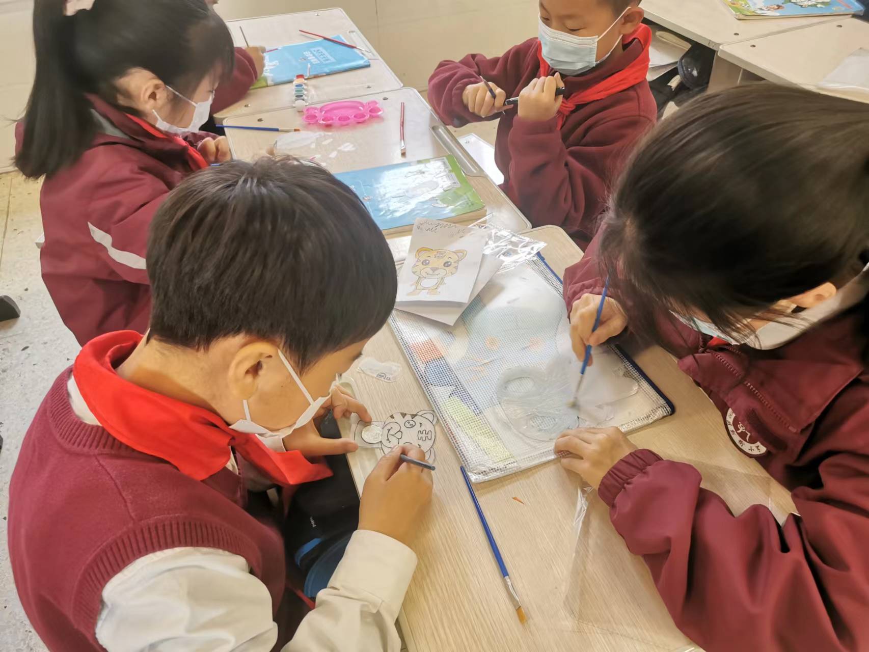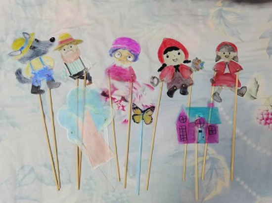 學(xué)習(xí)了軸對(duì)稱(chēng)圖形之后,學(xué)生們盡情發(fā)揮自己的想象,憑借自己的智慧,通過(guò)折一折、畫(huà)一畫(huà)、剪一剪、貼一貼等形式,一個(gè)個(gè)精巧的構(gòu)想,一份份新穎的創(chuàng)意,一個(gè)個(gè)鮮活的皮影戲角色便躍然紙上。