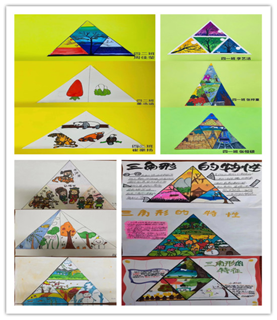 等腰三角形是四年級下冊第五單元所學(xué)的內(nèi)容之一,學(xué)生利用A4紙根據(jù)等腰三角形的特征,發(fā)散思維將等腰三角形又分成不同種類的三角形,并以繪畫的形式把三角形進(jìn)行裝扮,通過學(xué)生們自定主題、繪畫,將等腰三角形裝扮的更加美觀!四年級的“學(xué)子們”們積極參與活動(dòng),每個(gè)人都變身小小設(shè)計(jì)師,發(fā)揮自己充分的想象,分別將等腰三角形裝扮成自己喜歡的樣子,大家一起來欣賞我們的作品吧!