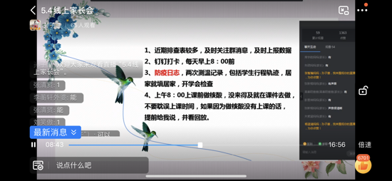 家長會上,各班班主任首先結(jié)合目前鄭州疫情的嚴峻形勢,要求各位家長一定要引起重視,并且提醒大家要堅持每日健康打卡,遵守各項防控規(guī)定,積極配合屬地社區(qū)和學校做好疫情聯(lián)防聯(lián)控工作,近期盡量居家不外出。堅持講衛(wèi)生、勤洗手、常通風、少聚集。其次,各班班主任對接下來的線上教學進行了詳細安排,對在學習過程中可能出現(xiàn)的問題,向?qū)W生和家長提出了合理化的建議,希望家長們?yōu)楹⒆犹峁┌察o的上課環(huán)境,做好后勤配合工作,切實擔負起學生的監(jiān)管職責,指導和督促學生按照學校作息時間按時參加學習,按照授課教師的要求完成各科作業(yè),并提交教師進行批閱。最后,班主任提出,家校之間要相互理解、尊重、信任和配合,齊心協(xié)力促進孩子的學習和成長。