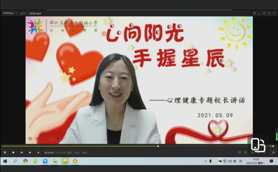 中新河南網5月10日電(吳勇強)為配合疫情防控,學生們進行居家學習生活,在此期間,不可避免地將面臨焦慮、煩躁、緊張、恐懼、抑郁等多種負面情緒,鄭州高新區(qū)外國語小學五龍口校區(qū)時刻關注小龍寶們居家學習時的身心健康,5月8日上午,一至六年級舉行云端“同“心”抗疫”心理健康主題班會,全體班主任與龍寶們進行別樣的交流談心,韓輝校長介紹心理調節(jié)小妙招,幫助小龍寶們克服不良情緒,減輕和舒緩心理壓力。