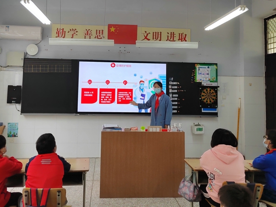復(fù)學(xué)第一課,各班級召開防疫主題隊會,讓學(xué)生們再次全面了解疫情相關(guān)知識和防護(hù)措施,做好心理健康教育。