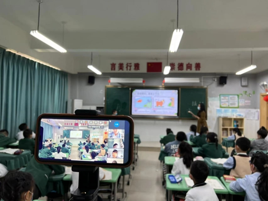 中新河南網(wǎng)5月19日電(吳勇強(qiáng))隨著復(fù)學(xué)工作的順利開始,沉寂許久的校園又充滿了歡聲笑語和朗朗書聲。然而,還有部分暫時(shí)不符合復(fù)學(xué)要求的學(xué)生仍無法正常返校上課。為減少疫情對學(xué)生學(xué)習(xí)的影響,西悅城第一小學(xué)按照上級教育主管部門的工作要求,全面做好對于未能正常返校學(xué)生的學(xué)習(xí)和心理疏導(dǎo)工作,專門制定了具有針對性的在線學(xué)習(xí)方案。充分利用釘釘軟件視頻會議,在本周一順利開啟線上線下同步課堂直播教學(xué),實(shí)現(xiàn)了居家學(xué)生與在校學(xué)生同步在線學(xué)習(xí)。