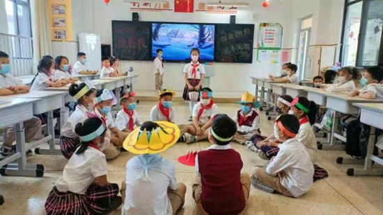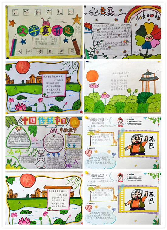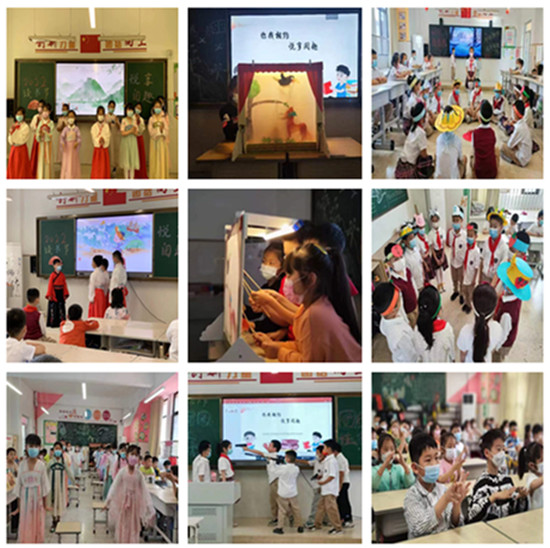 校園劇《動(dòng)物王國(guó)開(kāi)大會(huì)》、《要下雨了》、《十二個(gè)月》,學(xué)生們用童真的演繹把課文搬上舞臺(tái),將自己化身為最愛(ài)的人物形象“粉墨登場(chǎng)”;手勢(shì)舞《池上》、《小池》,學(xué)生們身穿漢服,熱情洋溢,朗朗上口的詩(shī)句時(shí)而輕快響亮,時(shí)而錯(cuò)落婉轉(zhuǎn);“長(zhǎng)大是什么?”,小小朗讀者用細(xì)膩真摯的感情,清新甜美的嗓音朗誦詩(shī)歌《我長(zhǎng)大了》,每個(gè)小聽(tīng)眾備受鼓舞,真情歡呼;童謠《老鼠和貓》、《顛倒歌》,學(xué)生們用和諧的韻律、明朗的節(jié)奏,讓童趣與笑臉相映,童謠與笑聲齊飛……室內(nèi)活動(dòng)現(xiàn)場(chǎng)掌聲不斷、熱鬧非凡,室外展板上一幅幅精心繪制的讀書小報(bào)、閱讀記錄卡潤(rùn)澤心田。學(xué)生們徜徉書海,書香盈滿校園。