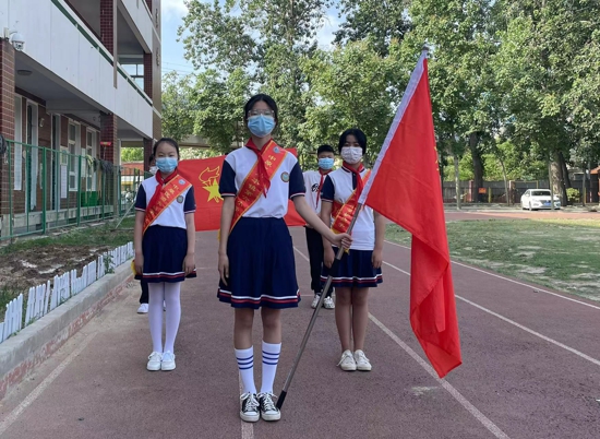 伴隨著莊嚴(yán)的出旗曲,旗手們高擎隊(duì)旗,昂首闊步。全體隊(duì)員齊唱《中國少年先鋒隊(duì)隊(duì)歌》,嘹亮的歌聲表達(dá)了同學(xué)們對(duì)少先隊(duì)組織的崇敬和熱愛。