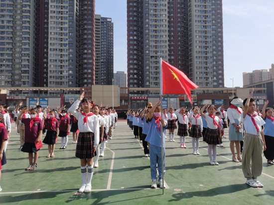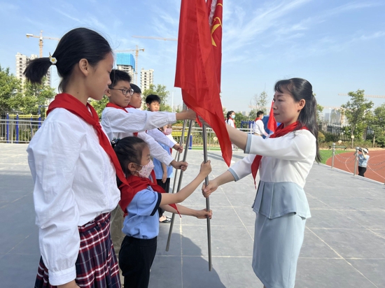 在大隊輔導員的領呼下、在退旗曲的嘹亮聲中,“喜迎二十大爭做好隊員”新隊員入隊儀式圓滿結束。