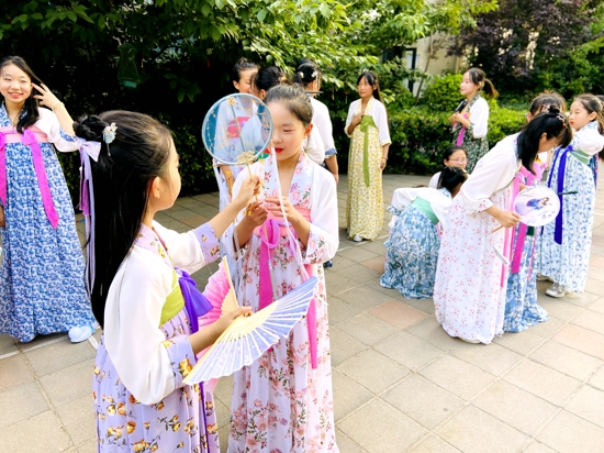 一年級的龍寶們學做故事扇子,讓膾炙人口的詩詞佳句躍然扇上。