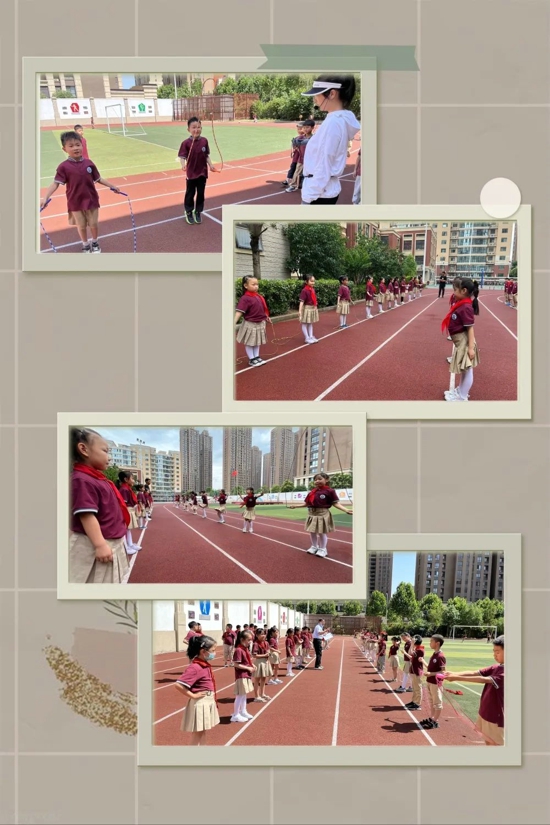 操場(chǎng)上,小嫩芽們正在進(jìn)行“彩繩飛揚(yáng)”體育評(píng)價(jià)項(xiàng)目。跳繩不僅可以鍛煉身體的靈敏性、協(xié)調(diào)性,還可以促進(jìn)肌肉、骨骼和神經(jīng)系統(tǒng)的全面發(fā)展。