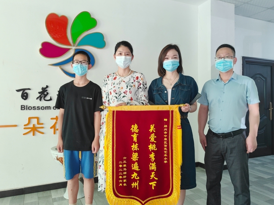 鄭州中原區(qū)百花藝術小學:用心育人暖人心 家長感恩送錦旗