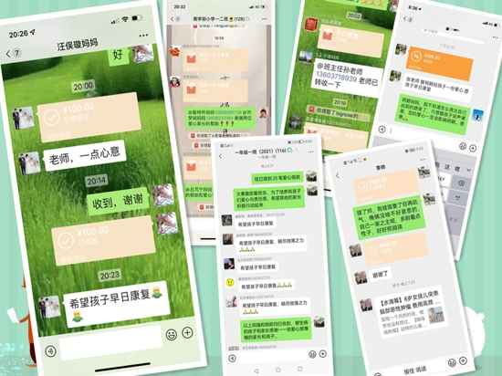 在捐款活動中,該校黨支部書記魏志英號召全體師生為李珂馨同學(xué)捐款。她希望大家能夠發(fā)揚(yáng)“一方有難,八方支援”的精神,獻(xiàn)出自己的愛心,一起幫助珂馨同學(xué)渡過難關(guān)。在學(xué)校的倡議下,全校師生及家長紛紛慷慨解囊,奉獻(xiàn)愛心。此次師生及家長線上線下共募捐愛心款4萬余元。該校校長王瑩、黨支部書記魏志英、大隊輔導(dǎo)員王曉杰以及班主任馮會平老師代表學(xué)?赐绥孳巴瑢W(xué)并第一時間將愛心捐款送到患病學(xué)生父母手中,也送上了全校師生的祝福。“珂馨同學(xué)在做第一次腦積水手術(shù)后還在夢中背唐詩、敬隊禮......沒想到這么優(yōu)秀的孩子會遭此厄運(yùn),希望她能夠快點(diǎn)好起來。”班主任馮會平老師惋惜心痛地說道。