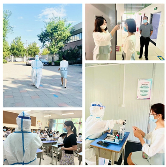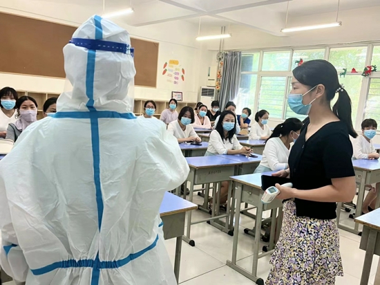 學(xué)生有序進入校園后,正副班主任老師在教室門口進行第二次體溫監(jiān)測。上課中如遇到學(xué)生不舒服情況,班主任老師第一時間聯(lián)系校醫(yī),由校醫(yī)帶至隔離室進行測溫,聯(lián)系疫情防控人員,立即對密接人員進行轉(zhuǎn)移,并對教室以及教學(xué)樓進行消殺。