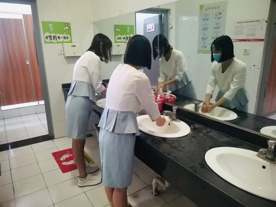 學(xué)校實行分年級分學(xué)段錯峰進行下課。班主任老師時刻提醒學(xué)生,課間不聚集、不隨意摘下口罩,分小組上廁所,保持安全距離,如廁后及時洗手消毒。
