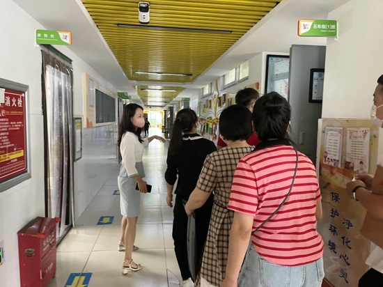 教師引導(dǎo)家長分組進(jìn)入審核組