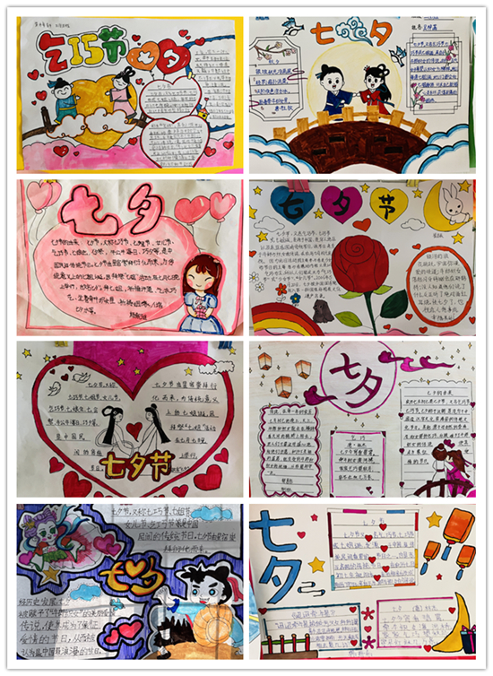 當(dāng)暑假遇上七夕,孩子們自主創(chuàng)造七夕小報(bào),加深了孩子們對(duì)傳統(tǒng)節(jié)日的理解,一張張小小的畫紙經(jīng)過孩子們靈巧的雙手,一瞬間就變得色彩斑斕,妙趣橫生。