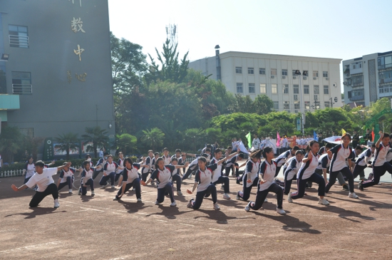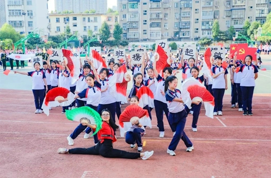 各班服裝統(tǒng)一、步伐整齊、口號響亮,國旗臺前的展示環(huán)節(jié)更是充分展示十九多彩的校園文化和十九學子良好的精神風貌。各班級學生在班主任的指導下,精心編排,用心準備,開幕式各具特色的表演精彩紛呈,高潮迭起:古典舞、扇子舞、集體舞、割稻舞、國學吟誦、武術……學生的展示環(huán)節(jié)融入了中華優(yōu)秀傳統(tǒng)文化,為師生們上演了一場視覺盛宴。