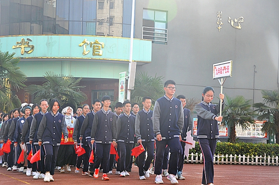伴著激昂的《運動員進行曲》,國旗班、校旗隊、禮儀隊、彩旗隊、裁判員隊伍、七八九年級的班主任隊伍及各班級方隊,邁著矯健的步伐依次從主席臺前走過,大家精神飽滿,氣勢高漲,入場整齊而有序。