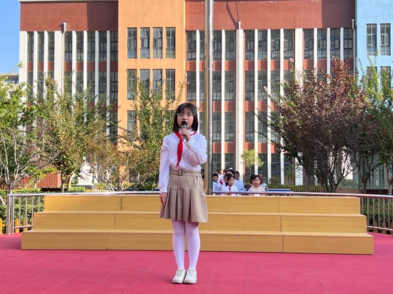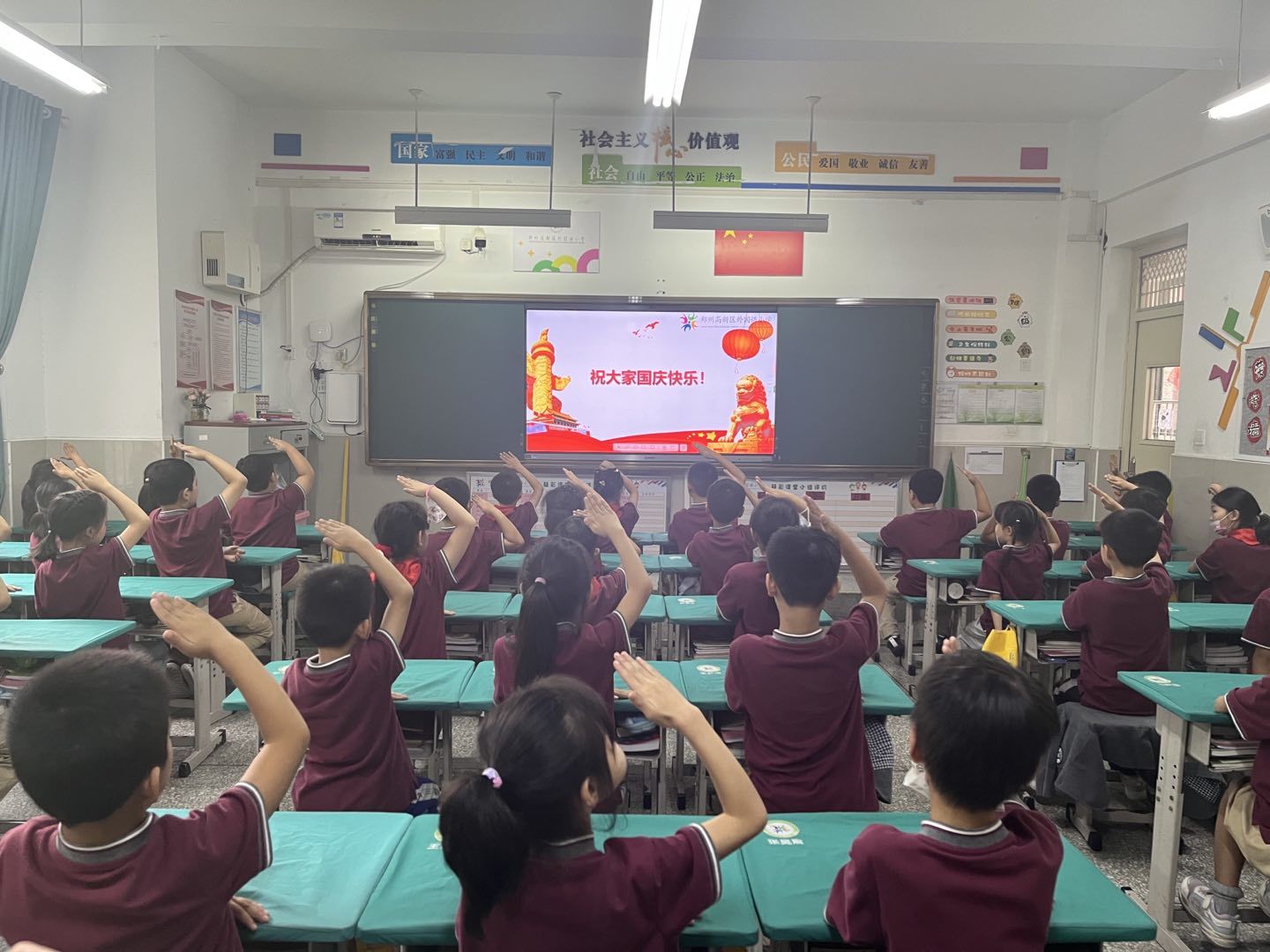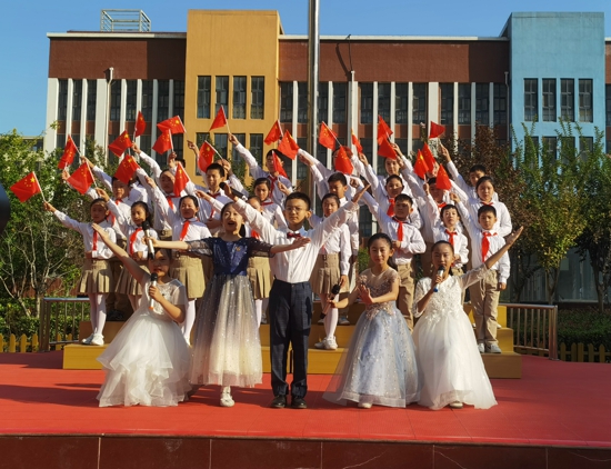 整齊的隊禮,曼妙的歌舞,經(jīng)典的詩詞,出彩果們真摯的祝福如秋日的陽光,溫暖熱烈。外小全體師生在鮮艷的五星紅旗下,不忘初心,牢記使命,以智慧為筆,以汗水為墨,為了祖國美好的明天努力學習,一起向祖國敬禮!