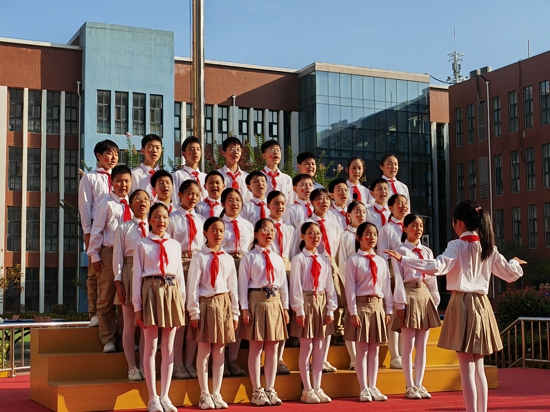 一首紅歌一面旗,一支紅曲一把號!紅歌嘹亮,踏尋百年崢嶸歲月;旋律鏗鏘,詮釋不朽歷史傳奇。五六年級的石榴果們唱響那一首首紅色經(jīng)典旋律,童音裊裊,燃情開唱,向祖國“聲”情告白,以童年之聲獻禮偉大的祖國母親!