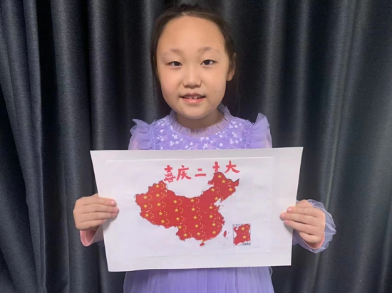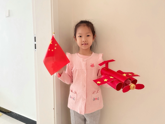“我用手頭現(xiàn)有材料,用色卡紙制作手工飛機(jī),裝飾上黃色五角星,這樣,一架充滿中國(guó)元素的飛機(jī)就完成了。雖然看上去簡(jiǎn)單,卻包含著我對(duì)祖國(guó)的熱愛。我希望祖國(guó)越來(lái)越繁榮昌盛!”三二班的石依諾說(shuō)到。