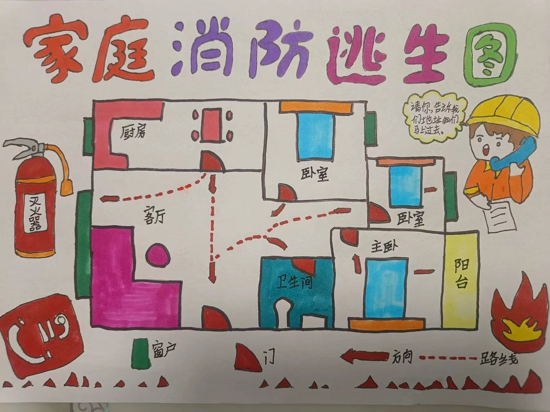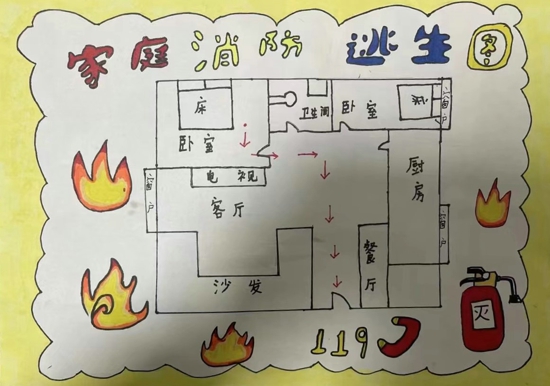 火災(zāi)中的逃生爭分奪秒,如果家里突發(fā)火災(zāi),如何迅速逃離火場?擁有一份熟記于心的家庭逃生路線,顯得至關(guān)重要。為進一步培養(yǎng)學(xué)生的安全意識,引導(dǎo)學(xué)生掌握逃生技能,學(xué)校布置了這份特殊的作業(yè):畫一張家庭消防逃生路線圖。