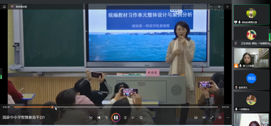 然后,共同觀摩學(xué)習(xí)了黃朝霞教授關(guān)于《統(tǒng)編教材習(xí)作單元整體教學(xué)設(shè)計(jì)與案例分析》的講座,黃教授從習(xí)作單元的結(jié)構(gòu)為切入點(diǎn),讓老師們了解了習(xí)作單元整體教學(xué)的必要性,對(duì)于資源的整合方法、流程等有了清晰的認(rèn)識(shí),也打開了每一位老師單元教學(xué)的思路。