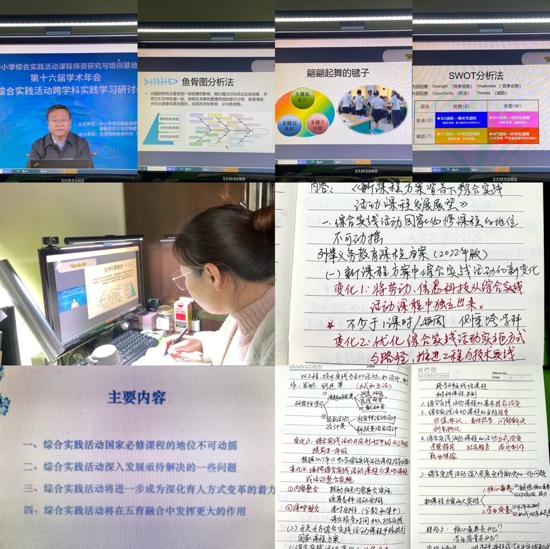 中新河南網(wǎng)11月22日電(吳勇強(qiáng) 黃珂)新時(shí)代呼喚高質(zhì)量教育,高質(zhì)量教育需要學(xué)科教育的轉(zhuǎn)型。為貫徹落實(shí)新的義務(wù)教育課程方案精神,推進(jìn)《中小學(xué)綜合實(shí)踐活動(dòng)課程指導(dǎo)綱要》的具體實(shí)施,11月18日,上街區(qū)中心路小學(xué)組織全體教師在線觀摩學(xué)習(xí)“第十六屆學(xué)術(shù)年會(huì)暨綜合實(shí)踐活動(dòng)跨學(xué)科實(shí)踐學(xué)習(xí)研討會(huì)”。老師們聆聽專家報(bào)告、觀看優(yōu)秀課例、撰寫學(xué)習(xí)筆記,積極開展校內(nèi)研討活動(dòng)。