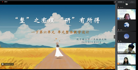 本次教研由伏牛路小學(xué)主辦,以“研習(xí)單元整體教學(xué)努力前行熠熠發(fā)光”為主題,活動分三個環(huán)節(jié):伏牛路小學(xué)各教研組進行語文單元整體教學(xué)階段匯報與交流;集團校教師代表發(fā)言;集團校領(lǐng)導(dǎo)進行線上巡課總結(jié)反饋交流。