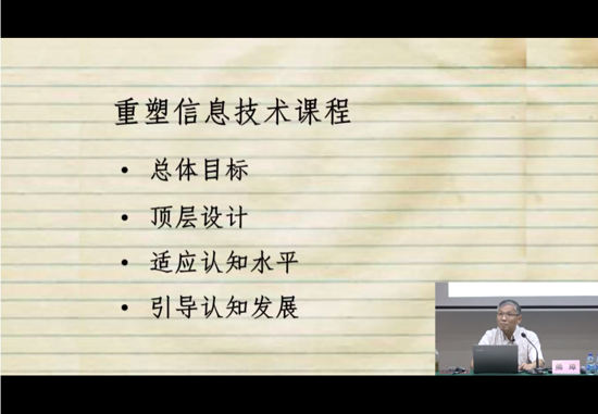 熊璋教授首先對如何把握信息科技教育的科學本質和育人價值問題進行了闡述,明確指出,對于信息技術課程,大家普遍更加關注學生對技能與工具的運用,而忽略了信息技術對于學生人生發(fā)展的重大意義。