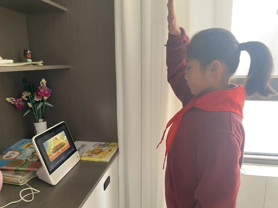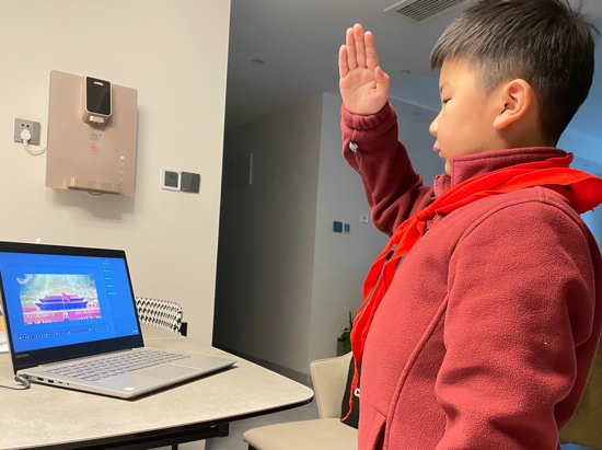 此次線上升旗儀式由梧桐中隊隊員常子軒主持,升旗儀式上,常子軒帶領(lǐng)隊員們通過視頻資料一同回顧了即將過去的2022年,從北京冬奧到神州飛天;從福建號正式下水到全球首架C919大飛機的交付;從香港回歸25周年紀念到抗擊疫情中的肝膽相助;從重慶山火中的騎行少年到冒著風雪戍守邊疆的年輕戰(zhàn)士……梧桐中隊隊員張若瑜在活動后講到:“在回顧的過程中深切感受到了這一年中人民的堅忍、祖國的富強,同時也看到了時代給予我們的使命。”