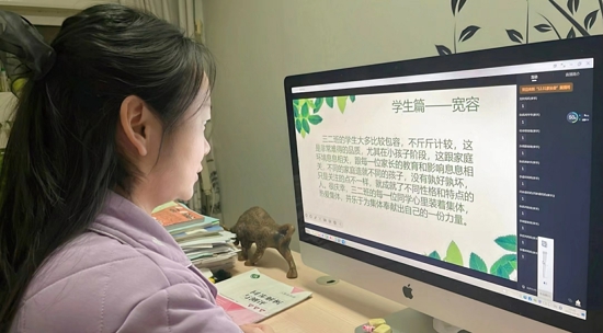 線上家長會上,各班主任老師帶領(lǐng)學生及家長一同回顧了本學期班級中的美好成長故事,分享了從班級美好教室的創(chuàng)建到每月美好活動的開展,從學生的進步成長到家校合作的點滴敘事。學生和教師、個人與集體相互陪伴、相促成長的美好故事也深深地印入每位家長的心田。太陽花教室的趙夢莎老師深情地寫下“愿為春風暖花蕊”,將自己對于教育的熱愛融入進學生成長的點滴之中。最后班主任老師們又細心地對包括期末評價、假期安排及安全教育等內(nèi)容向家長們進行了講解和交流。同時也提醒學生們在假期中要做到勞逸結(jié)合,度過一個充實而有意義的假期。