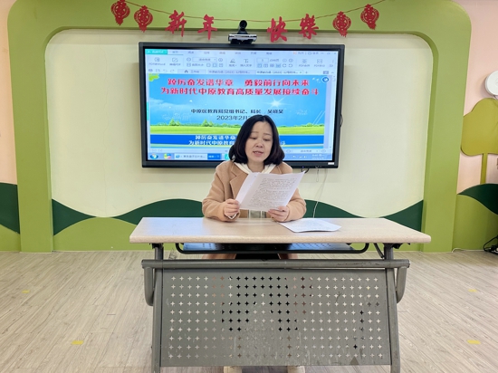 校長毛金霞在會議上做了新學期致辭,向全體教師傳達了中原區(qū)教育局黨組書記、局長吳曉昊在中原區(qū)2023年教育工作會議上的講話精神,帶領教師們學習了《鄭州市中原區(qū)教育局2023年工作要點》,了解中原區(qū)教育發(fā)展動向,并回顧了2022年的工作要點,充分肯定了2022年工作成績,同時對2023年工作進行了詳細部署。