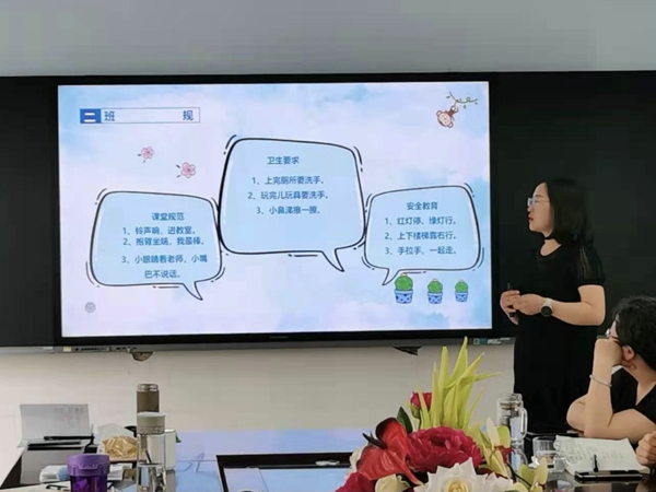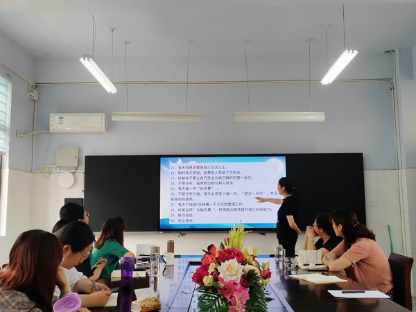 周雅蘋老師分享了班主任學習感悟,從班主任階梯閱讀推薦書目,到有效讀書的三種方法,再到如何管理班級的細小環(huán)節(jié),干貨滿滿。竇靜老師分享的班級文化建設,從班級口號、班規(guī)、班級環(huán)境三個方面展開,為班級文化建設注入了新的活力。盧曉靜老師的分享,從堅守教育信念、常懷陽光心態(tài)、教育理念常新、經(jīng)常思考四個方面入手,讓老師們感悟到班級建設確實是一門精雕細刻的藝術。
