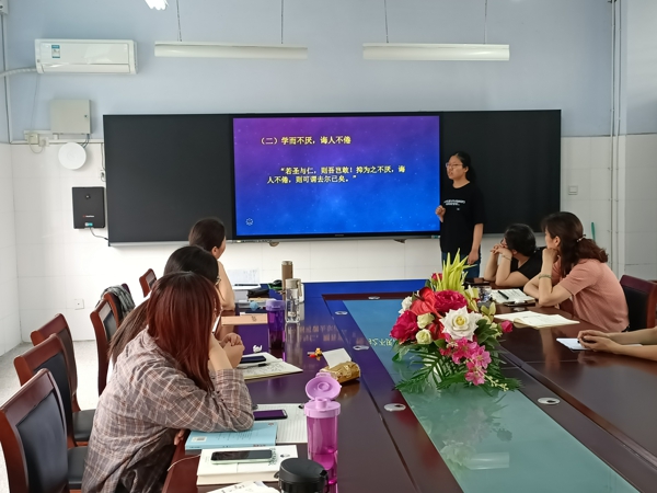 宋曉亞老師分享了骨干教師培訓,從教學、科研、閱讀、寫作四方面助力教師專業(yè)發(fā)展。李曉冉老師從勞動教育的現(xiàn)狀、什么是勞動教育、如何開展勞動教育實踐活動課程展開分享,讓老師們對勞動教育課程的實施有了新的看法。徐靜老師分享了《美術大單元教學》,使老師們了解了如何設計情景并有效實施大單元教學。張玲菊老師分享了題為《在路上》的培訓感悟,如何提高學生的表達和語文識字能力是老師們值得思考的問題。田鈺老師分享了孔子的教學方法,從學而不厭,誨人不倦,到愛護學生,無私無隱,使老師們感受儒家教育思想的博大精深!