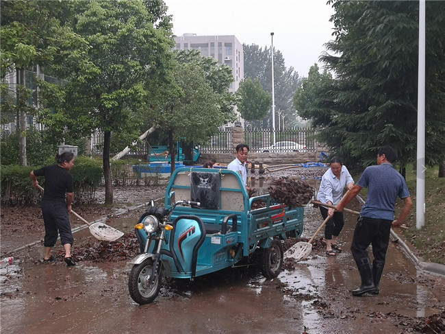 面對突如其來的重大汛情,鄭州電力高等專科學(xué)校迅速啟動防汛應(yīng)急響應(yīng)。主要領(lǐng)導(dǎo)坐鎮(zhèn)指揮,連夜展開應(yīng)急處置,統(tǒng)籌協(xié)調(diào)各項工作;后勤服務(wù)中心對全校處于低洼地帶的道路與管道進(jìn)行檢查,落實現(xiàn)場排水及清淤、相關(guān)設(shè)備斷電等措施,防止設(shè)備漏電以及人身傷害事故;同時加強(qiáng)供電設(shè)施的巡視、監(jiān)測,重點開展配電房內(nèi)澇及線路受災(zāi)隱患排除。