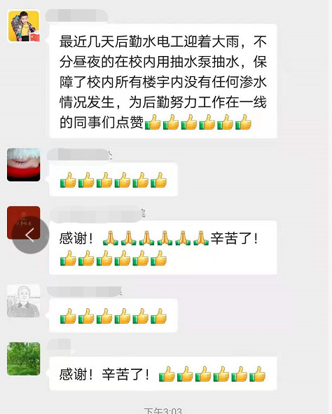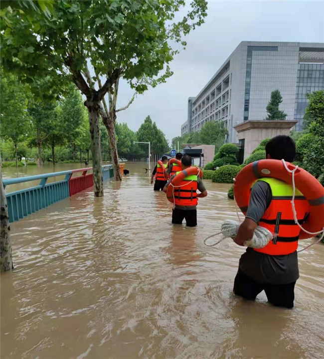 最終在應(yīng)急救援隊和學(xué)校救援隊的努力下,順利將被困教職工全部救出。體育部教師駕駛槳板也參與救援。學(xué)校保衛(wèi)處同事還和藍(lán)天救援隊的隊員一起,及時解救了不少被困群眾。