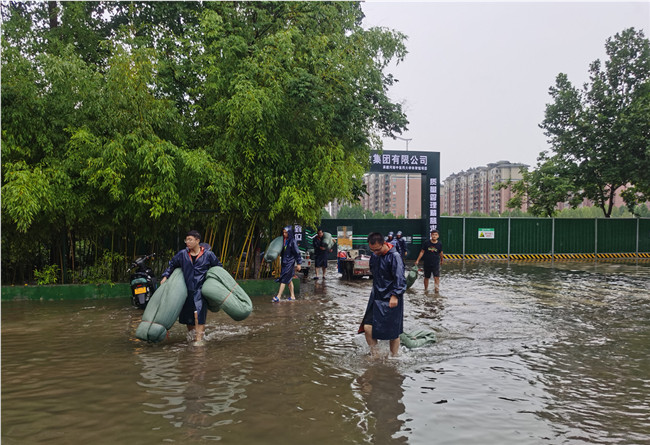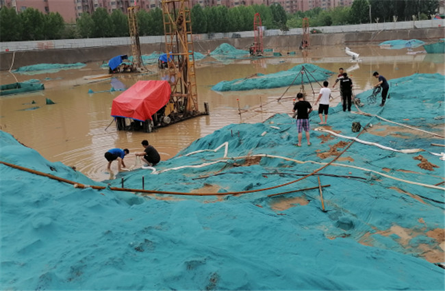 保安全降損失。7月20日,降雨持續(xù)增大;21日,暴雨仍在繼續(xù),鄭州市多次發(fā)布暴雨紅色預(yù)警;交通受阻、信號(hào)中斷、電壓不穩(wěn)等不良情況陸續(xù)發(fā)生,工地防汛壓力驟然加大。面對(duì)洪水肆虐,基建人聞“汛”而動(dòng),全員堅(jiān)持工地一線,全面排查防汛隱患風(fēng)險(xiǎn)點(diǎn),以最嚴(yán)措施、最嚴(yán)紀(jì)律、最嚴(yán)作風(fēng),全力做好在建工程防汛安全。在建工程現(xiàn)場,依照防汛應(yīng)急響應(yīng)的方案,全面投入防汛工作。組織人員關(guān)停了所有機(jī)器,關(guān)閉非必要電源,用雨布遮蓋用電設(shè)備,嚴(yán)防漏電事故發(fā)生;建立防汛墻,防止雨水灌入低洼區(qū)域;選派人員前往樓頂,及時(shí)疏通排水口,確保排水順暢;地下室放置多臺(tái)潛水泵、場地外開挖排水溝進(jìn)行引流,24小時(shí)不間斷抽排雨水。通過一系列措施,最大限度降低建設(shè)損失,保證工程基坑和主體結(jié)構(gòu)安全,確保無安全事故發(fā)生。