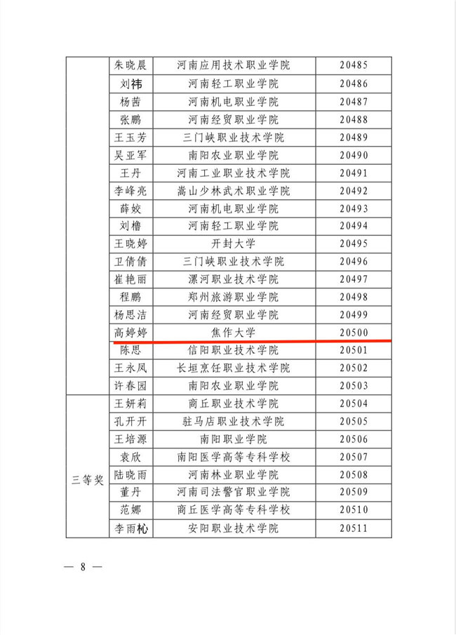 此次競賽經(jīng)各地、各學(xué)校選拔推薦,省教育廳組織專家評選,高職組共評選出一等獎14 個,二等獎 23 個,三等獎 27 個;優(yōu)秀組織獎 15 個。焦作大學(xué)教師在比賽中獲得優(yōu)異成績,既是學(xué)校教師優(yōu)秀品質(zhì)的展現(xiàn),也是對學(xué)校師德師風(fēng)建設(shè)成果的檢驗(yàn),將進(jìn)一步促進(jìn)學(xué)校師德師風(fēng)建設(shè)工作再上新臺階。